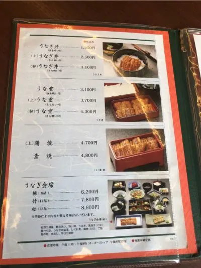 店内メニュー うなぎ専門料理店 うなぎの黒田屋 福岡市南区 鰻 出前 和食